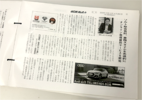 旬間経済誌「山口経済レポート」にインタビュー記事が掲載されました。オンライン顧問サービスなどのお話をさせていただきました。